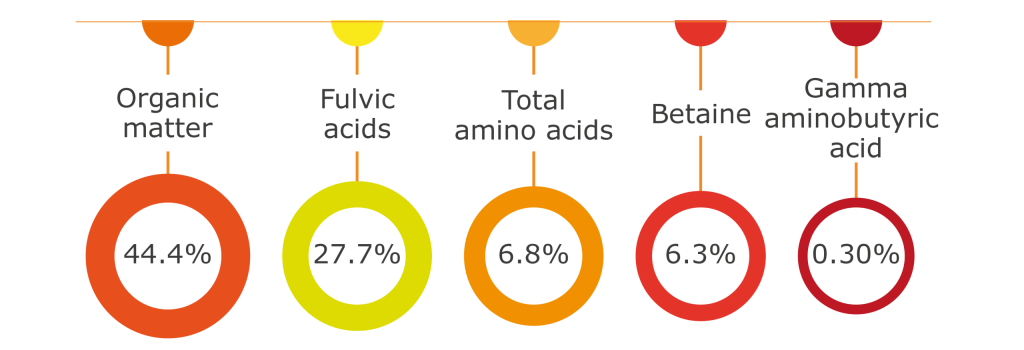 Plant-based biostimulant that improves plant development at root and vegetative level. Its high content in fulvic acids and organic matter favours soil fertility, while the amino acid content enhances the assimilation of nitrogen, potassium, boron and iron in its formulation.